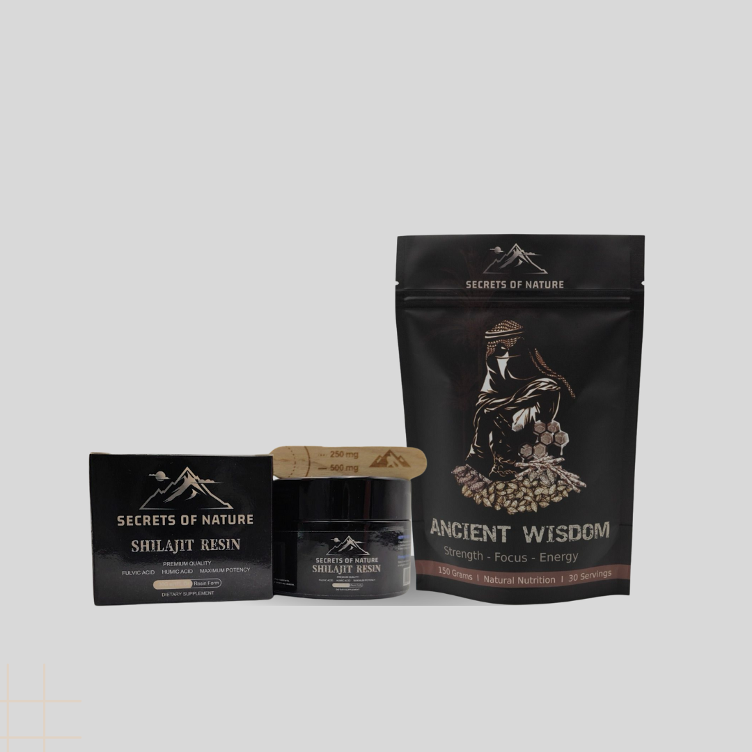 Experience our wellness bundle, which includes three traditional Sunnah products and four modern wellness essentials, enhanced with a natural raw Himalayan shilajit booster for an extra energy lift. Embrace the synergy of time-honored practices and modern health solutions for enhanced well-being.